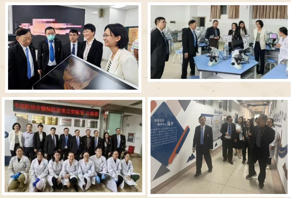 普拉博罗玛拉查诺克学院代表团一行先后参观了基础医学院的形态学实验教学中心、机能实验教学中心、中医综合实验教学中心实验室,并到云南省中西医结合慢病防治重点实验室进行了深入走访。